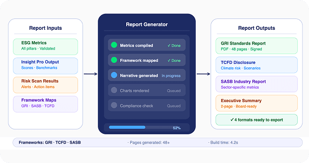 Generate ESG reports aligned with leading frameworks